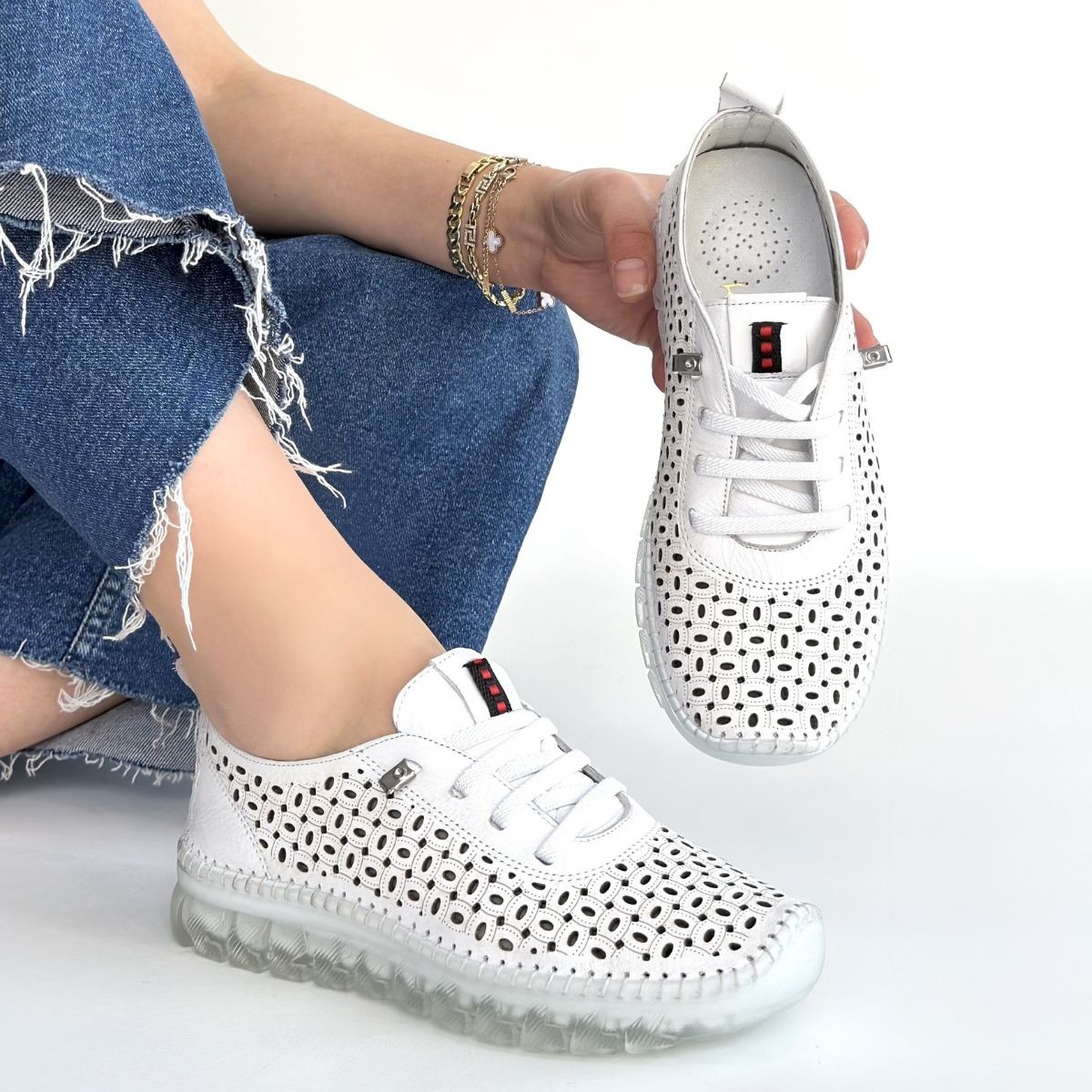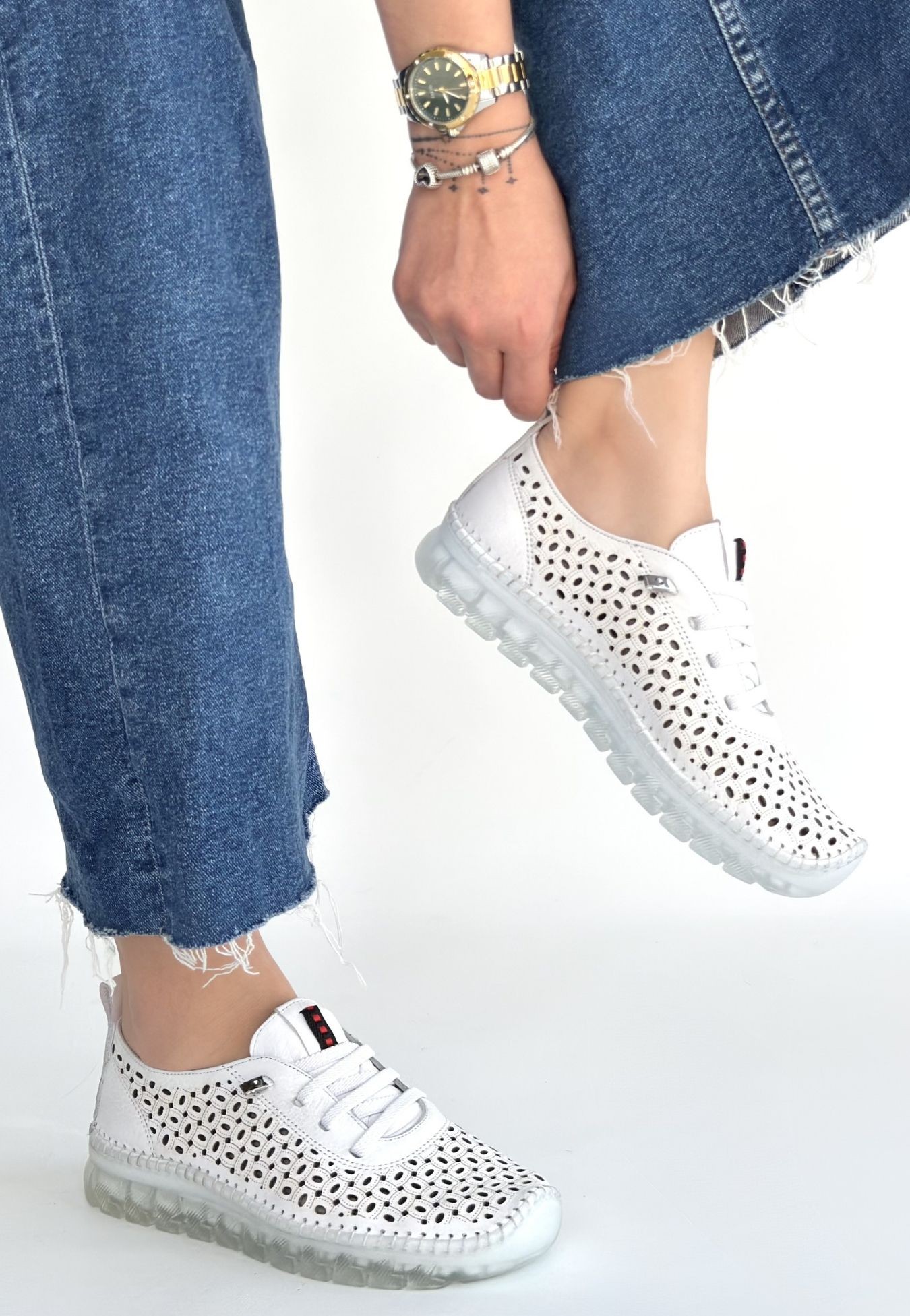 • Otja Beyaz Deri Lazerli Bağcıklı Spor Ayakkabı