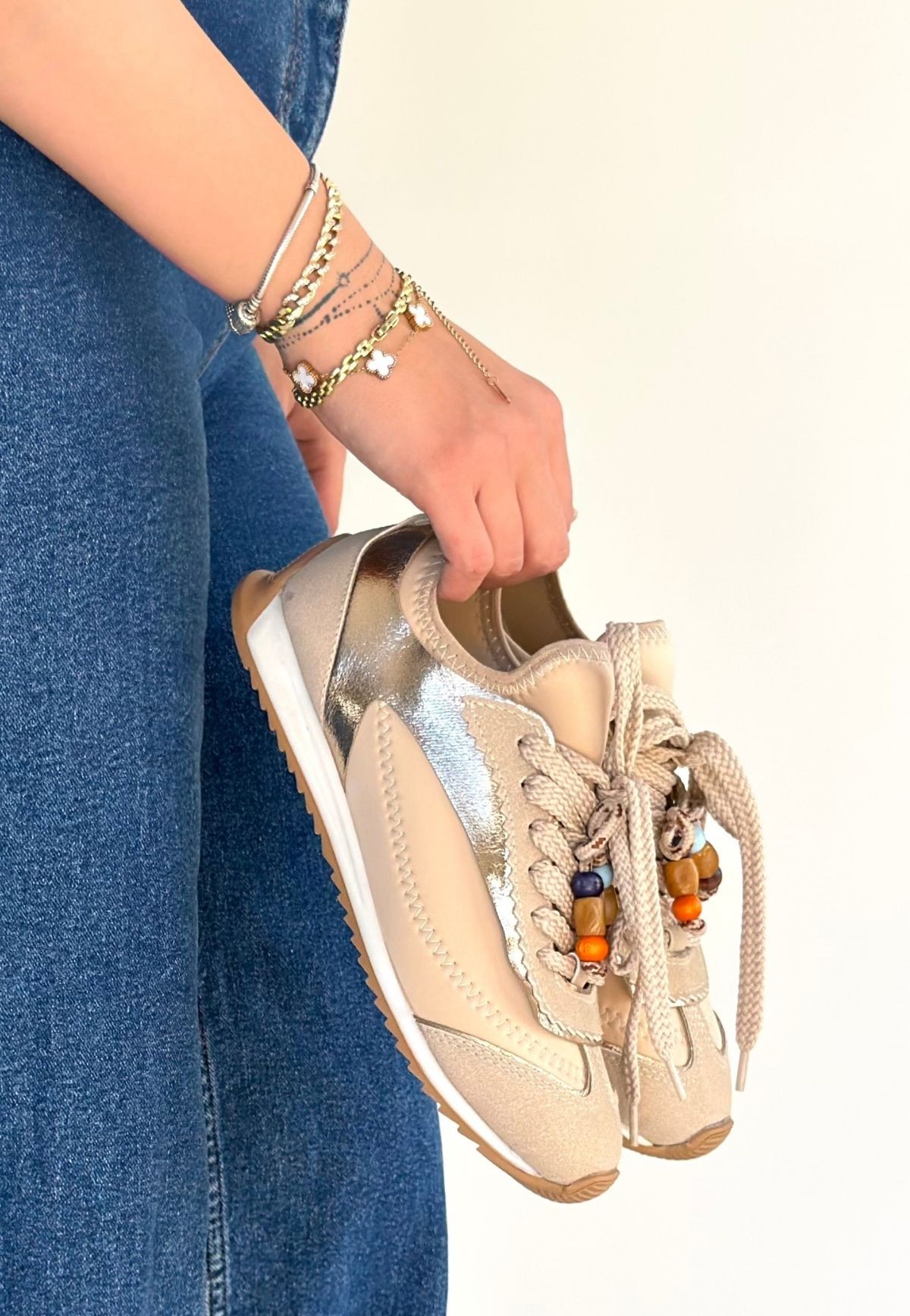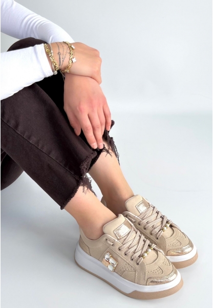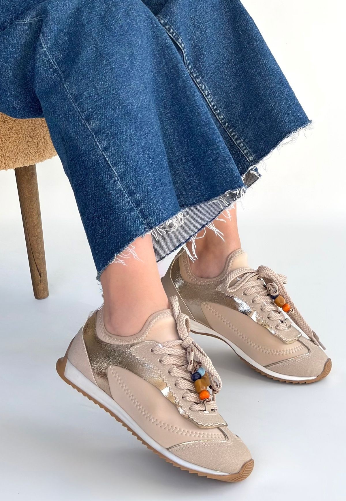 • Riaf Bej Cilt Bağcıklı Spor Ayakkabı