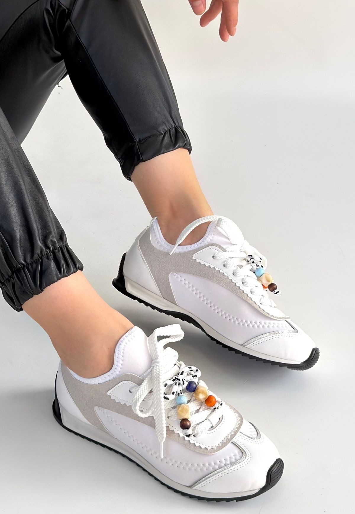 • Riaf Beyaz Cilt Bağcıklı Spor Ayakkabı