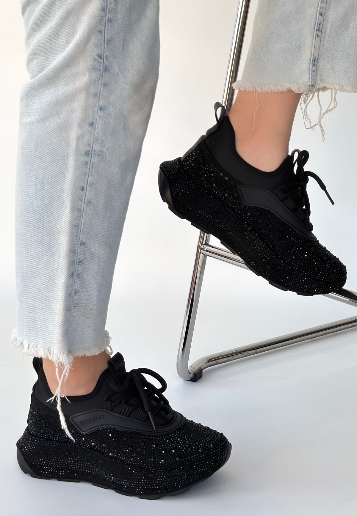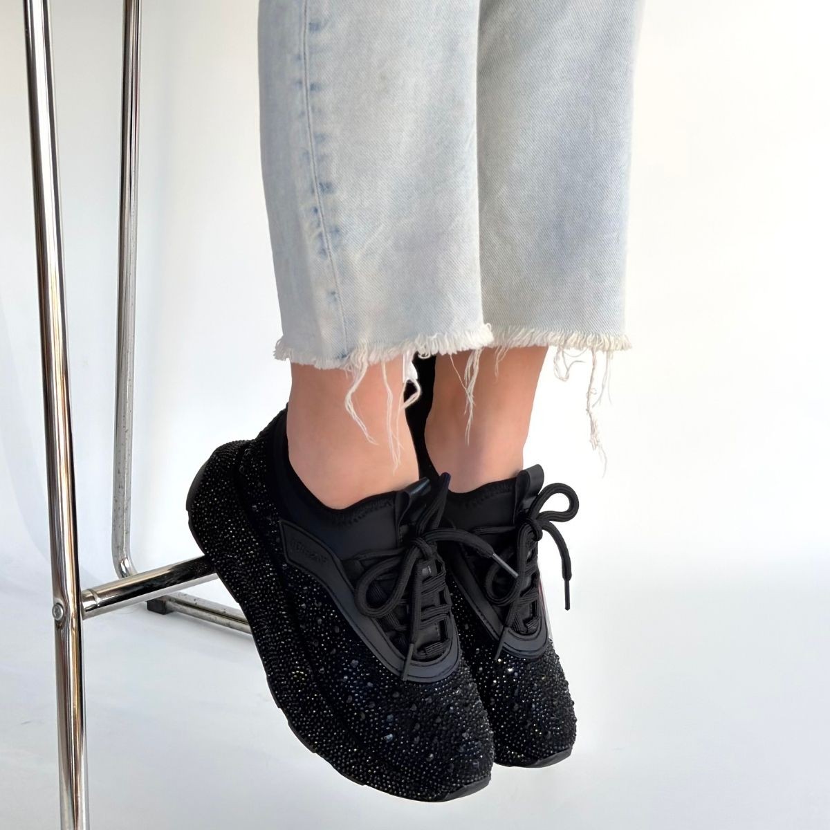 • Rimay Siyah Cilt Boncuk İşlemeli Spor Ayakkabı