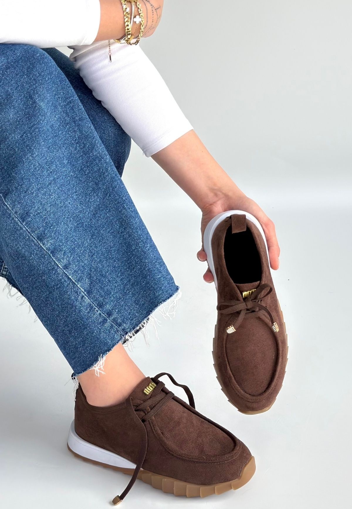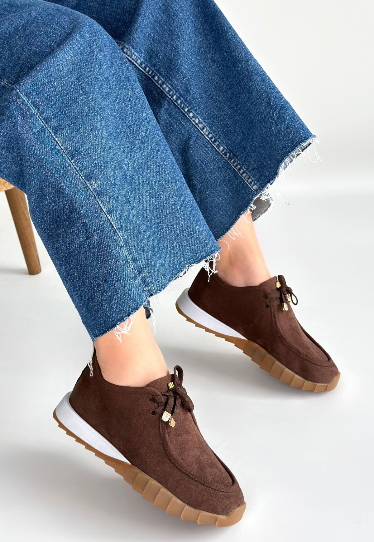 • Sier Kahverengi Süet Bağcıklı Spor Ayakkabı