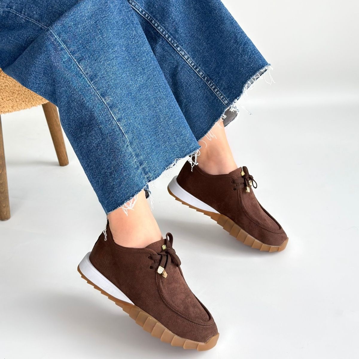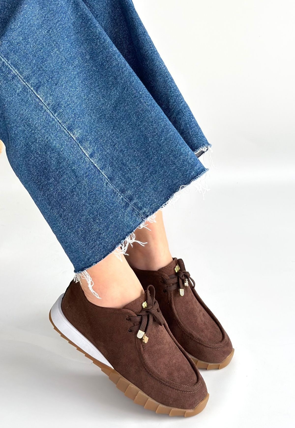 Sier Kahverengi Süet Bağcıklı Spor Ayakkabı