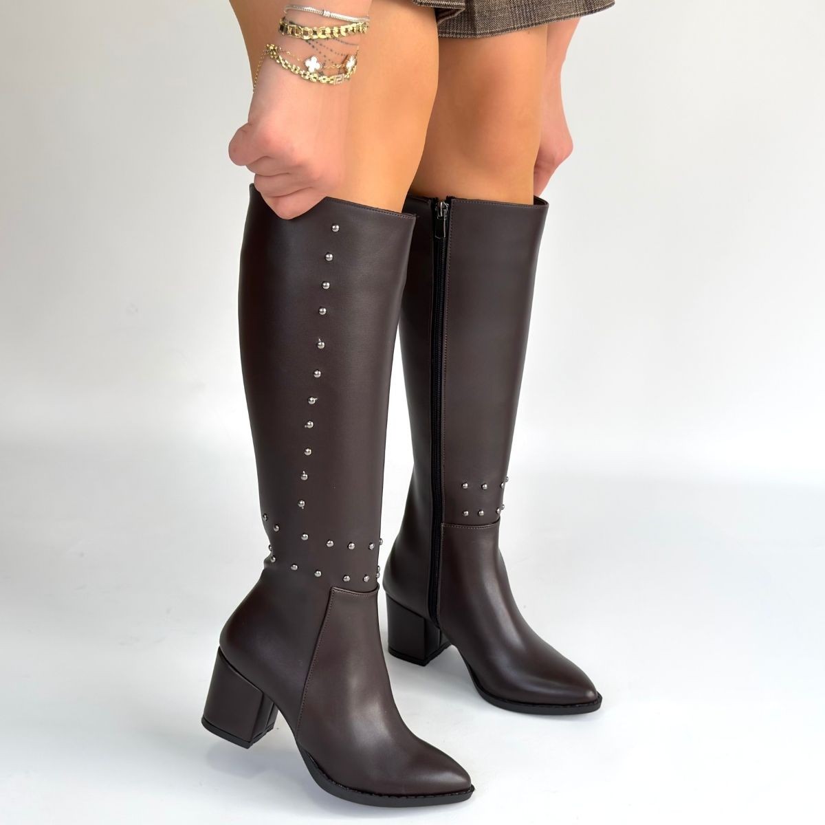 • Tiyan Kahverengi Cilt Topuklu Çizme