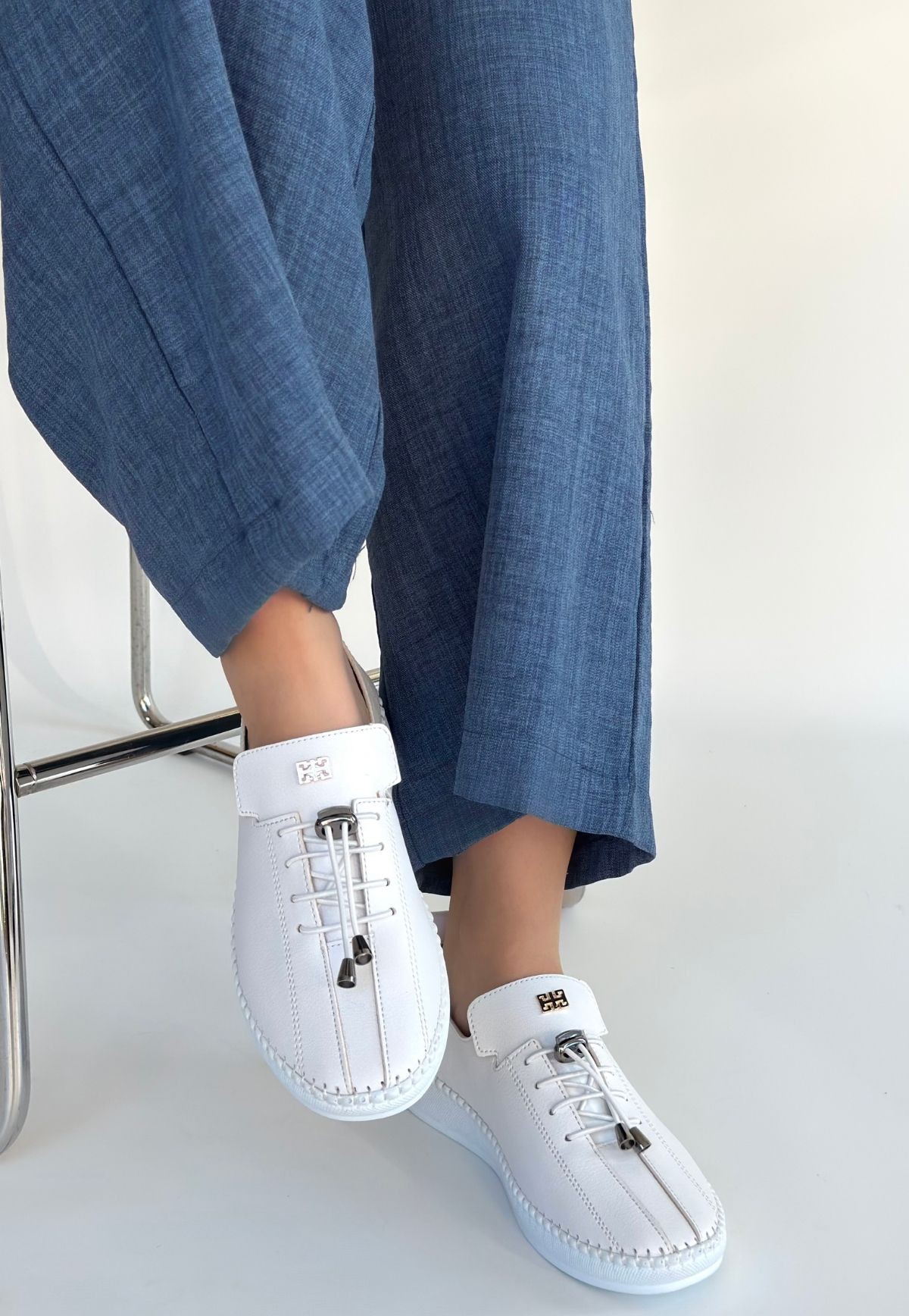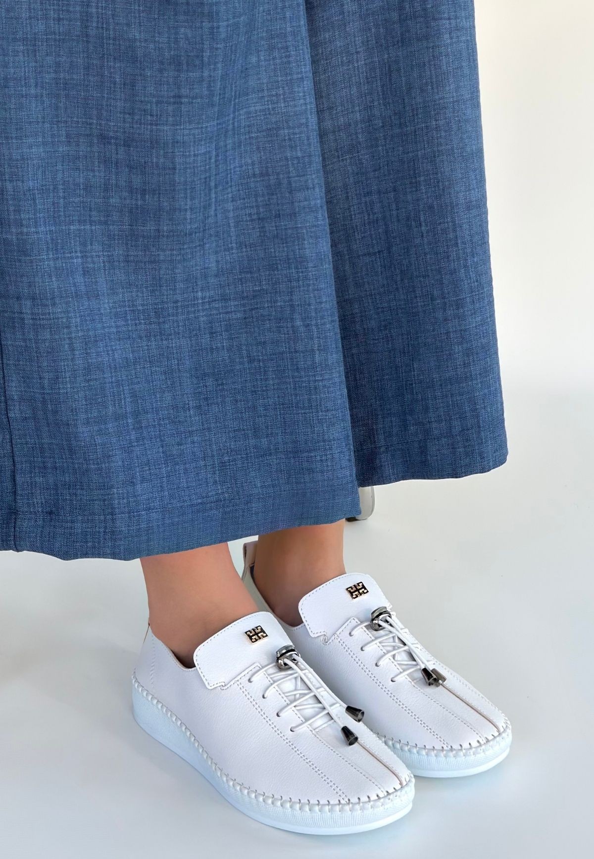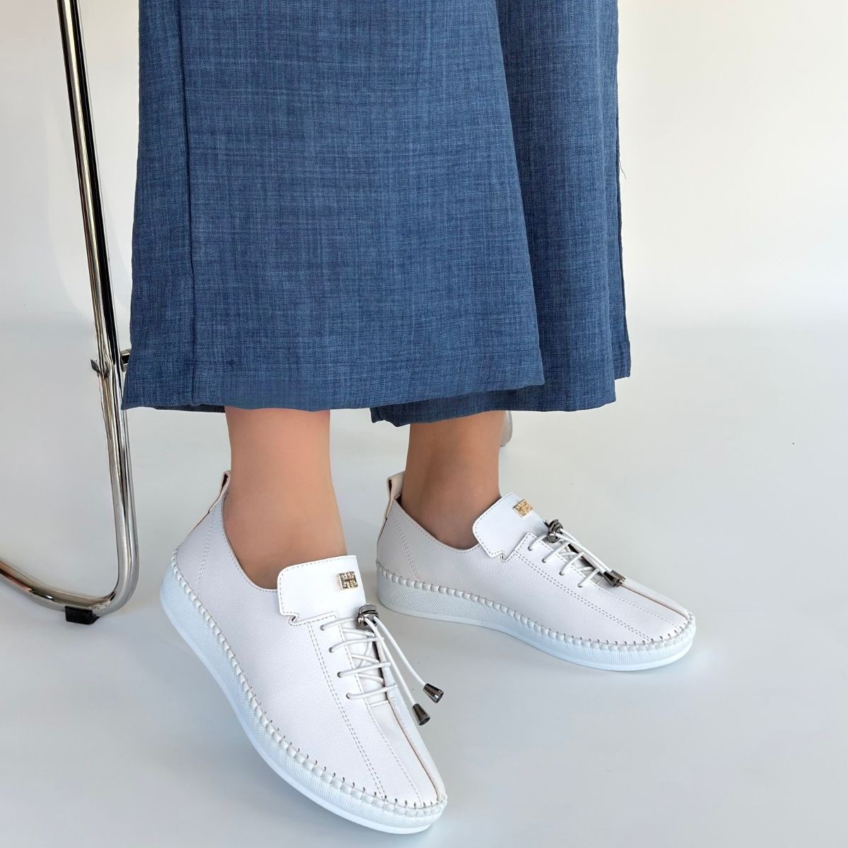 • Warte Beyaz Cilt Bağcıklı Spor Ayakkabı