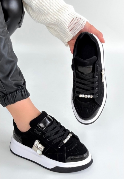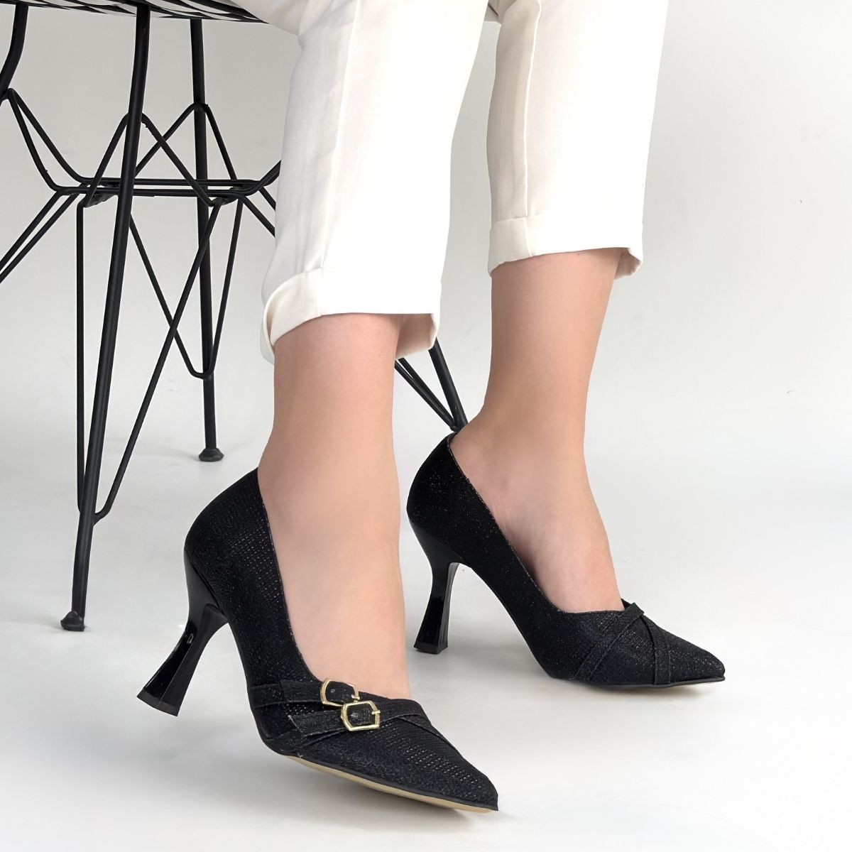 • Wenda Siyah Simli Cilt Topuklu Ayakkabı