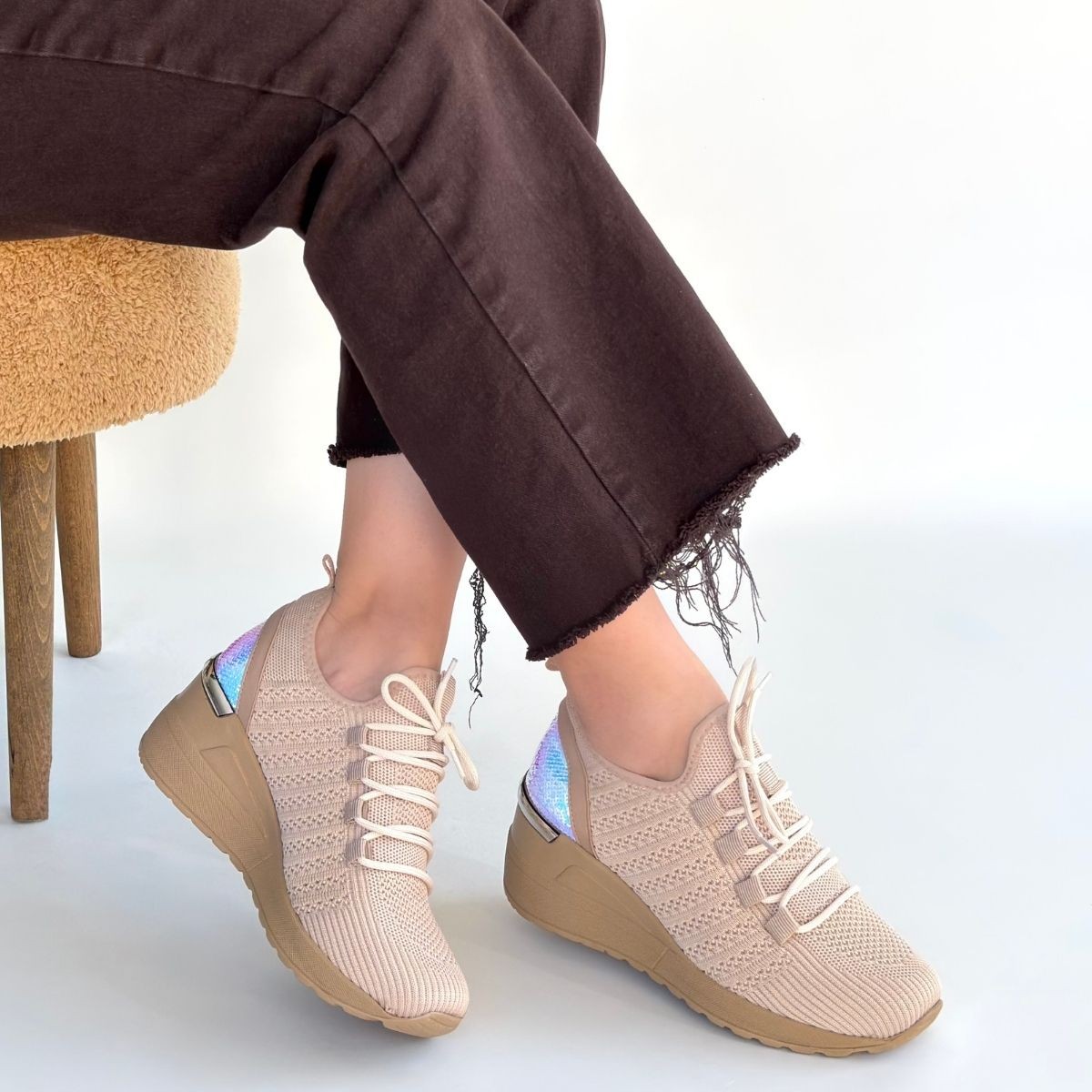 • Weor Bej Triko Bağcıklı Spor Ayakkabı