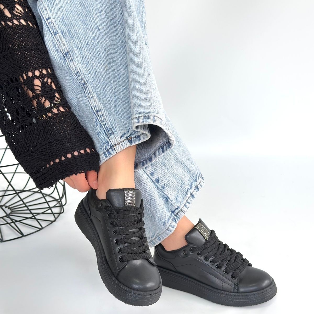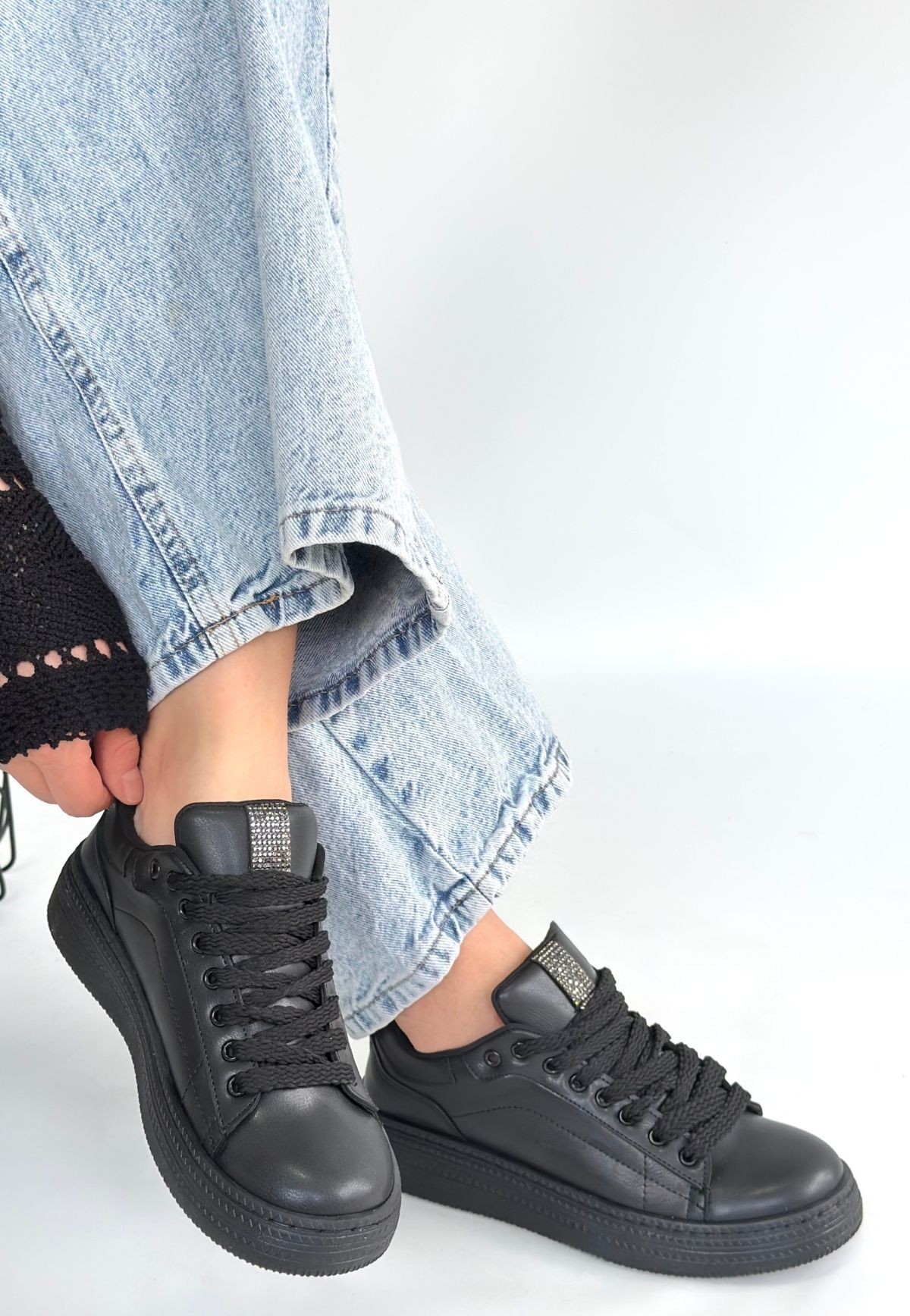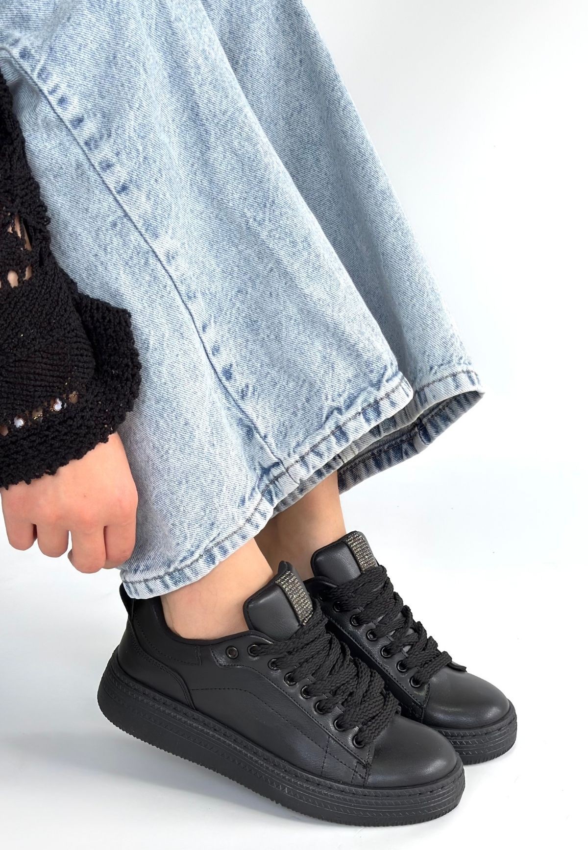 • Yier Siyah Cilt Bağcıklı Spor Ayakkabı