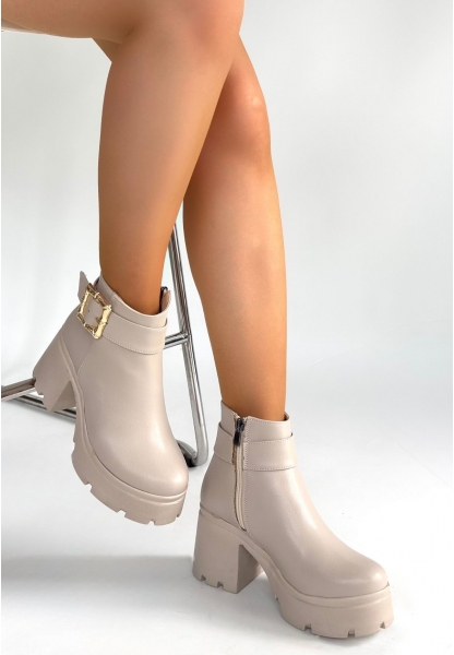 Yote Bej Cilt Topuklu Terlik